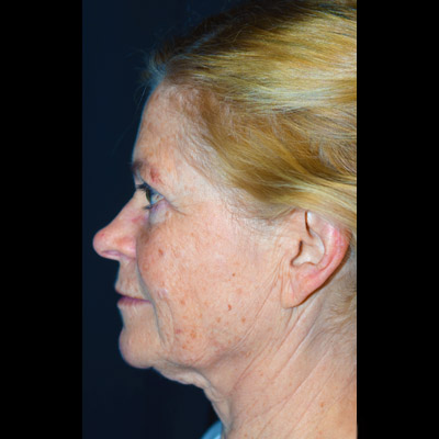 Ansiktslyft och endoskopiskt pannlyft samt undre ögonlocksplastik med fettransposition och fettsugning av hals.